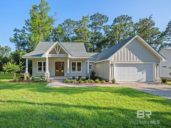 Discover refined living in this stunning 3 bedroom, 2.5 bath- Craftsman-style residence built by Eric Craig Homes, offering 1700 sq ft of thoughtfully designed living space. Nestled in a peaceful, secluded setting with no HOA, this home provides the perfect blend of privacy and convenience - just minutes from both Fairhope and Foley. Step inside to discover high-end finishes and top of the line appliances throughout, reflecting quality and attention to detail in every corner. The craftsman architecture adds warmth and character, while modern amenities ensure comfort and style. Outdoor enthusiasts will love the location- just a stone's throw from Fish River and a nearby public boat launch, making it ideal for boating, kayaking, or simply enjoying the scenic surroundings. Whether you are looking for a serene retreat or a full-time residence with easy access to local amenities, this home offers the best of both worlds. Buyer to verify all information during due diligence.