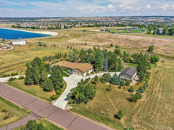 Welcome to 12380 N 6th Street in Parker—where luxury and tranquility meet in a serene, rural setting just 10 minutes from the Denver Tech Center! This rare, fully renovated 2-bedroom 2-bath ranch plus an office in the highly sought-after Grandview Estates offers breathtaking sunsets over the Rockies and sits on a beautifully landscaped 2.42 acre lot, surrounded by lush greenery and meticulously maintained lawns. Stunning cherry oak wood floors flow seamlessly throughout, providing a striking contrast to the crisp white walls. The heart of the home is the expansive kitchen, remodeled in 2020, featuring sleek stainless-steel appliances, a spacious eat-in area, and bar seating. With easy access to the outdoor patios, it’s the perfect space to enjoy your morning coffee or unwind at sunset. The adjacent living area, warmed by a cozy built-in electric fireplace, is bathed in natural light from a large picture window, making it an ideal spot for both relaxing and entertaining. The distributed audio system adds a touch of modern sophistication to this inviting space. The home's stunning office is a bright, peaceful retreat with large windows offering serene views of the outdoors. The primary suite is a luxurious escape, featuring a walk-in closet and a beautifully remodeled 2024 en suite bathroom with dual sinks and high-end finishes. The secondary bathroom, also renovated in 2024, reflects the same attention to detail and style. Step outside and discover an entertainer’s paradise, with several private, professionally landscaped outdoor spaces that invite gatherings or quiet moments of reflection. Car enthusiasts and hobbyists will love the attached 3-car garage, along with the 1,000-square-foot detached, heated garage/workshop—perfect for projects, a home gym, or a studio. Located just minutes from E-470, this oasis offers the best of both worlds: the peaceful charm of rural living and the convenience of city access in a truly exceptional setting.