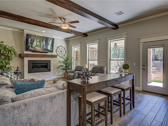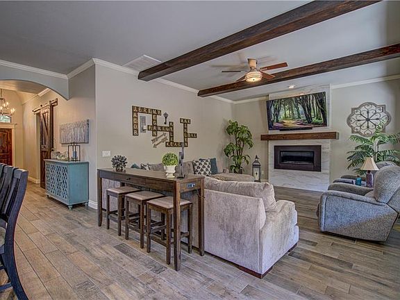 Beautiful home on a .75 acre lot in the gated Silva neighborhood. This open floor plan is great for entertaining or hanging out with the family. The living room boasts rustic beams, modern fireplace and picture windows looking onto the backyard. If you are looking for a well designed kitchen, you won't be disappointed with this one. From the large island that includes a breakfast bar, to the stainless appliances, large pantry and the quartz countertops, you will be in love! Check out all the extras that are included: wood look tile, built-in custom hutch in dining area, crown moldings throughout most of the house, archways, custom moldings around the windows and doors, 4 inch baseboards, and much more. Enjoy relaxing in your primary suite including a double floating vanity with under cabinet lighting, whirlpool tub, walk-in shower and spacious closet. The backyard has a patio along the entire house with bonus fireplace. The lot to the south will remain a wooded lot.