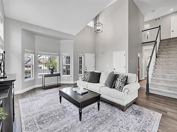 Welcome home! This beautiful home in the esteemed Stroh Ranch Community has everything you are looking for. This home is situated on a large lot that backs to a path that leads you to the Cherry Creek Trail. This 4 bed, 3 bath home has been well loved, and has been the perfect place to build lasting memories. This thoughtfully updated home has everything you’ve been searching for. Upon entering you are greeted with high ceilings and lots of natural light creating such a welcoming atmosphere. The kitchen is thoughtfully designed with lots of cabinet and counter space. One of the most amazing highlights of this home is a cute breakfast nook where you can enjoy meals with your loved ones, while taking in the beautiful Colorado scenery, and wildlife. Yes, I said wildlife, don’t be surprised if you see a deer or two, for they too love the path to the Cherry Creek Trail. The open flow of the kitchen into the living room provides the perfect opportunity to engage in conversation while preparing meals for your family and friends. Three of the four bedrooms in this home are perfectly situated on the upper level of this home. There is an additional full bath upstairs. The large primary bedroom is a tranquil cozy retreat. The en-suite bathroom boasts a shower, and a large tub for a relaxing bubble bath after a long day. There is one additional bedroom located in the basement. The finished basement is a blank canvas waiting for your own personal touches. One of the most amazing highlights of this home is the backyard! Step outside to your beautiful oasis! There is a large patio space where you can entertain family and friends, all while taking in the magnificent beauty of your surroundings. Trust me this backyard is memorable to everyone who sees it. This home will not last long….make it yours!!! Be sure to check out the photos of the yard that my sellers captured.
