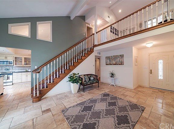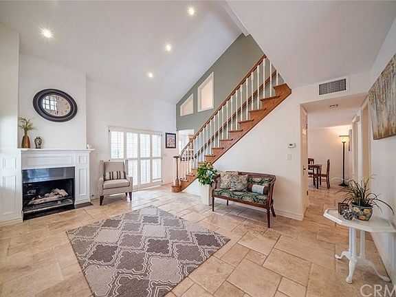 Gorgeous 2 story home in prestigious Parkewood community, across the street from College Park East, Seal Beach. Many stunning upgrades include Travertine stone flooring throughout with beautiful hardwood floors in the bedrooms. High vaulted ceilings and recessed lighting throughout, with cozy fireplace in living room. Charming kitchen with custom cabinets and glass, granite countertops, stainless steel appliances, and gorgeous chandelier. Upstairs bathroom features a pedestal sink, vanity area, custom cabinets, sparkling black granite, travertine tiles and lighting imported from Italy, with range shower. Freshly painted interior, abundant windows with custom wood shutter blinds. Upstairs master leads to huge private rooftop deck with breathtaking views. Third upstairs bedroom is open loft-style with endless possibilities. Large private covered patio with built in bbq deluxe station and seating area perfect for entertaining, with tranquil lion fountain. Very secluded and private patio with 7 ft block wall and located on end of peaceful cul-de-sac. Mature landscaping includes lemon tree, avocado tree and beautiful roses. Steps away from association pool, spa, sauna, clubhouse, and ping pong table with super low HOA! Highly accredited award winning Los Alamitos school district. 5 minutes away from the beach, The shops of Rossmoor, Old Ranch Town Center, Old Ranch Golf Country Club, plus nearby freeway access to 405/22 and 605.