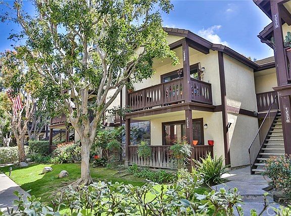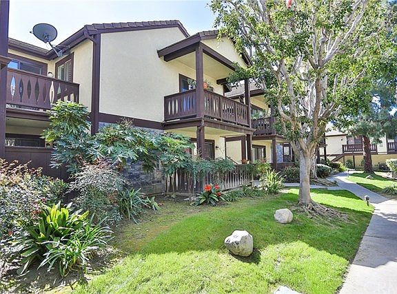 Centrally located in Orange County, this fabulous 2 Bed, 2 Bath condo is in the highly desirable gated community of Les Jardins. Numerous upgrades throughout including recessed lighting, new dual-pane windows, remodeled bathrooms with granite vanities, tile flooring in kitchen and bathroom for easy maintenance and new wood laminate floor throughout bedrooms. Dual balconies, one off the family room and a private balcony off the master suite. Enjoy the convenience of having in-unit washer and dryer. This unit includes one of the oversized end-unit 2 car garages with additional storage space. In addition to the garage, you also have a permit for an uncovered spot. Les Jardins is known for its serene setting with mature trees, lush landscaping, duck ponds, water crossing wooden bridges and waterfall features. The resort-style atmosphere includes two swimming pools with spas + a clubhouse. Located within the Garden Grove Unified School District, close to shopping establishments, eateries, and local freeways. HOA covers water and trash. Move-in ready.