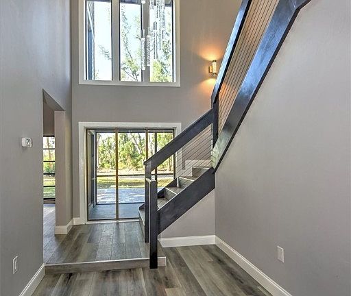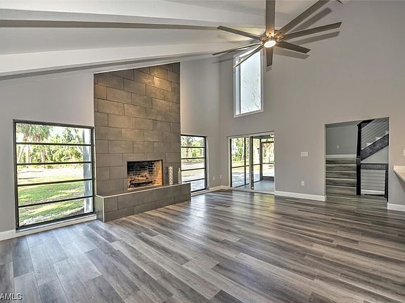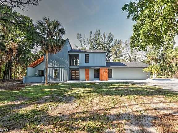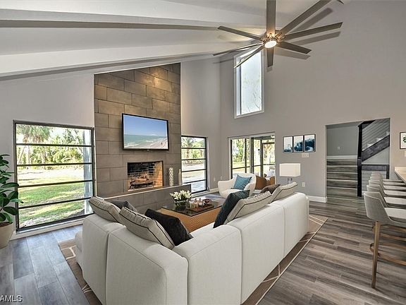 Beautifully Remodeled Contemporary home in Summerwood. Check out the photos to see all the meticulous details and latest decorator finishes like luxury vinyl throughout, all new whirlpool kitchen appliances, new maytag washer/dryer, brand new bathrooms, custom closet systems, gorgeous lighting incl. the stunning chandelier in the 2 story foyer, new white kitchen cabinets, quartz countertops, new tile fireplace surround, new modern stair railing, all new ceiling fans, new recessed lighting and 6000 sq feet of paved driveway and backyard patio. What the pictures don't show is all the work behind the scenes: new roof, 2 new ACs, plumbing and electrical updates, new septic tank pump, new water heater, cleared the lot of excess trees, new landscaping and painted inside and out. Bonus - the cleared lot allows a view of the lake from abutting property. Great home on a 1.4 acre lot allows privacy yet close to all that South Fort Myers has to offer. 3 bed, 2 bath, 2 car, living room with vaulted ceiling/exposed beams and fireplace, and huge kitchen adjacent to living room. Balcony off of 2nd floor Primary Bedroom. SOME PICTURES ARE VIRTUALLY STAGED. Voluntary HOA $150/yr