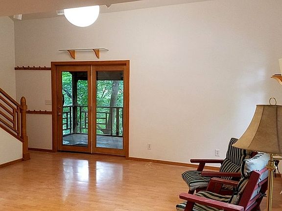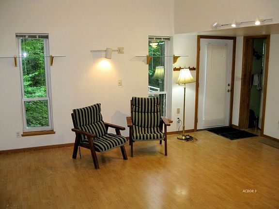 This well maintained 3 bedroom, 2 bath home is charming and a real surprise. Located just minutes from Athens and sitting on a 5.32 ac. m/l of beautiful trees and completely private back yard. When you enter, you'll find large open concept with vaulted ceilings in the kitchen, living and dining area, laminate floors and great light from outside. Upstairs are 2 nice size bedrooms with landing open to the downstairs. Lower level is a full finished walkout basement with Master Suite including full bath, large closet, and custom dry spa. Both the 1st floor and lower level have French doors that go out to two private screened in porches overlooking the wooded backyard. Home offers lots of storage plus has new vinyl siding and is a must see to appreciate.