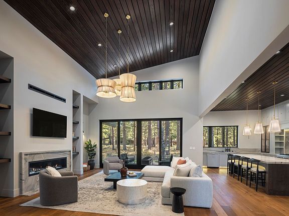 Discover modern luxury in Old Greenwood with this new construction 4-bedroom plus media room home. Boasting 3,728 square feet and backing onto a greenbelt for added privacy, this soft and elegant residence offers a sleek aesthetic and spacious layout. The main level features both primary and guest suites, an office, while upstairs includes two en suite bunk rooms plus a bonus room. 3 bedrooms have wardrobes in lieu of closets. Outside, enjoy a landscaped oasis in the backyard with firepit, built in grill and hot tub ready enclosure. Added touches include a pass through bar from the kitchen, AC, heated bath floors and Elan Smart Home system. Fully furnished for your convenience, this home promises a luxurious lifestyle in a serene setting. Old Greenwood is a prestigious resort community spanning 600 acres of stunning landscape. Centered around a Jack Nicklaus Signature Golf Course, offering luxury Tahoe Mountain Club amenities like a clubhouse, fitness center, pools, tennis courts, golf and Northstar apres ski club and private restaurant. Optional membership is available to purchase separately. Residents enjoy hiking, biking, fishing, and easy access to top ski resorts.