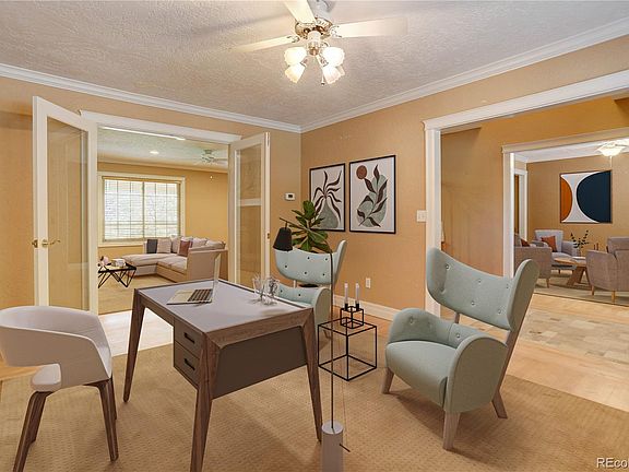 Look no further than this spectacular remodeled home located on the second fairway of Aurora Hills Golf Course. Beautiful, large kitchen boasts plenty of chocolate-glazed toffee maple cabinets, slab granite, five-burner gas cook-top, glass/tile and copper back-splashes, stainless appliances with new Bosch dishwasher, built-in refrigerator, and microwave/convection plus second wall oven. Circular slab granite breakfast bar adds to the custom feel. Formal living room with french glass doors lead to the family room featuring remote controlled gas fireplace with moss rock wall. Main floor study just off the foyer. Gorgeous dining room with sliding glass paned doors lead out to the patio. Half bath with vessel sink. Upstairs are four large bedrooms, including a luxurious primary bedroom with remote controlled skylights. Hidden wall safes in the walk-in closet. Finished basement can be used as separate living quarters with its own kitchen and bathroom, and wonderful built-in bookcases. Forever views across the golf course and conveniently located five minutes to great shopping, restaurants, hospitals, DIA and Buckley Space Force Base. This home is eligible for up to $17,500 in Home Buyer Grants for down payment/closing costs or for up to a full percentage point off your buyer's mortgage as a part of Aurora's Community Reinvestment Act.