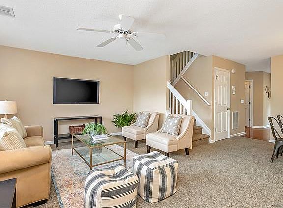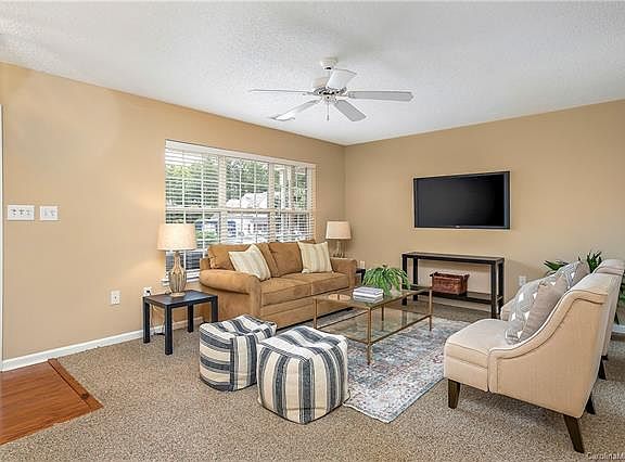 Welcome to this 2 bedroom 2.5 bath in Maple Crest! Neutral paint throughout! Open living room with ceiling fan flows seamlessly to the dining area and kitchen. Powder room and laundry room on main. Kitchen with wood cabinets, recessed lighting and island leads to the sliding door out to the back patio and yard. Attached storage closet provides additional storage space. Master bedroom with vaulted ceiling and ceiling fan. Master bath with dual sink vanity, tub/shower combo and large walk-in closet. Additional bedroom also upstairs with attached bathroom and walk-in closet. Close to Ballantyne and 521/Johnston Road!