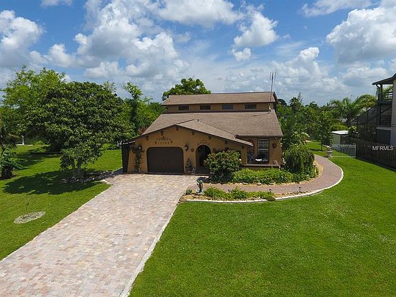 For the most accurate information on this property, contact the listing agent directly at markhamsher@gmail.com or 941-809-8846. IMMEDIATE WATER ACCESS! 2 MASTER SUITES! PRIVATE 2nd floor deck! FAST ACCESS to the open water! No canal lock! VERY WELL MAINTAINED RUSTIC MEDITERRANEAN property! *Be sure to check out the 3D walk-through tour by clicking on the 'Tour 1' button at the top left of this MLS listing* Enjoy breathtaking views from this 3 BR/3 BATH home! Seawall, 10'x26' dock, lift, METICULOUSLY landscaped tropical setting with GAZEBO and waterside lighting! The list of features is hard to top AND THE VIEW from the upstairs deck cannot be matched! As you approach this home from the CUL-DE-SAC street, the attention to detail is eye-catching. From the paver driveway and walkways to the chiseled-edge tile flooring, from the hardwood stairs wrapped with black iron railing to the PRIVATE MASTER suite DECK or the AWESOME OUTDOOR tiled LIVING AREA, you will be severely impressed! NEWER HVAC, outdoor wet bar, tile and wood flooring throughout!!! The CHEF'S KITCHEN, highlighted with WOOD CABINETRY, FULL GRANITE BACKSPLASH, under-sink R/O, white shaker cabinets, 42" uppers, soft-close drawers, double oven and 2016 stainless appliances is ideally located with fantastic views. There is NO WORK to do here with this ultra-clean home. Public water, upgraded fixtures, doors and trim, tons of storage, whole house circulation pump, courtyard entrance, pre-wired surround sound, fish pond, fire pit, fruit trees and finished garage with A/C! And when it's time to entertain, JUST WAIT until your guests see the view and outdoor living space!