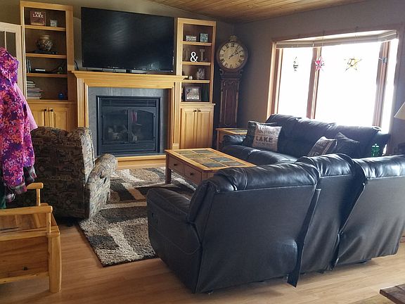 This home offers the most beautiful views of Chute Pond. The two bedrooms, 1 1/2 bath home overlooks a nicely landscaped yard and sandy shoreline. The over-sized detached garage has a completely remodeled bonus room with two bedrooms, family room and half bath and a bar for extra guests. Open floor plan includes gas fireplace with bookshelves and many windows overlooking the water. This house has been remodeled in 2016. A recent appraisal and a professional survey has been done. A definately must see property