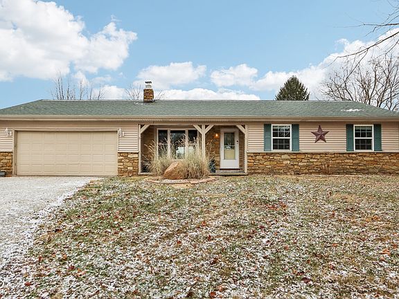Discover this charming 3-bedroom, 2-bathroom ranch home nestled on nearly 1 acre of land in a peaceful neighborhood within the desirable Mooresville School District. This property offers a fenced backyard, an exterior shed, a large detached garage with heating capability, and additional storage options, including a lean-to and a covered area for firewood. Perfect for entertaining, the beautifully landscaped yard provides a serene space for gatherings. Inside, enjoy laminate hardwood flooring throughout, a newer fireplace insert for efficient and cozy heat, and an updated furnace/air system (2021). The water heater was replaced in 2020, and the roof is approximately 7 years old, offering peace of mind for years to come. All appliances are included, even the washer and dryer making this home move-in ready. With no HOA and modern updates, this home is the perfect combination of comfort, convenience, and country living. Immediate possession available. Don't miss your chance - schedule your showing today!