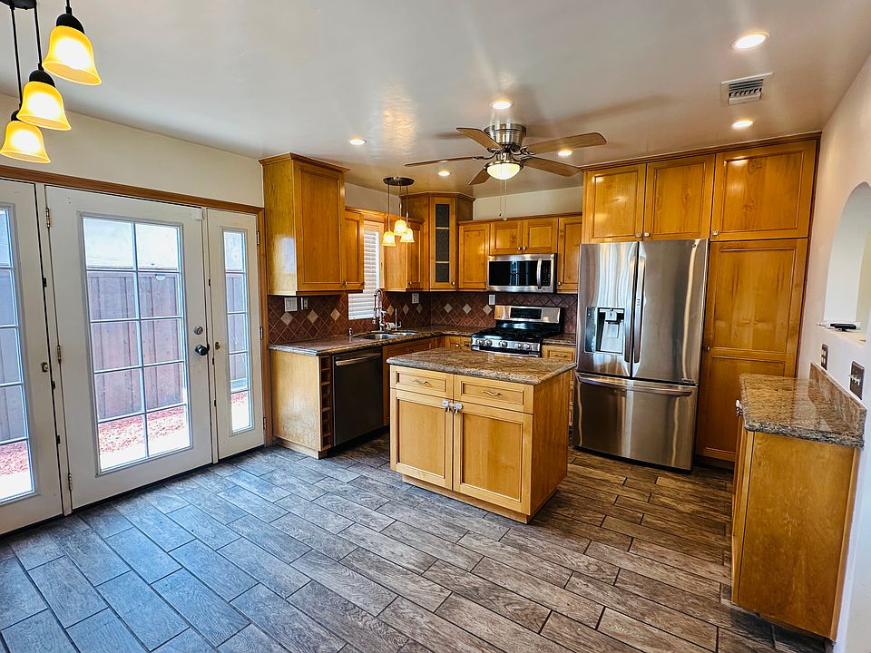 Immaculate single family home w/ 4 bedrooms, 2 bathrooms. Available to show upon request via calls/messages. Home is open concept with a fully remodeled kitchen that includes stainless steel appliances: Refrigerator, Stove with oven, Microwave, Dishwasher, and Garbage Disposal. Attached 2 Car Garage and a large driveway for parking. Home is on a quiet street in a calm neighborhood. Features: Open formal living room, family room, and dining area 1 Master bedroom, bathroom vanity, and closet 3 bedrooms with closets Huge patio and nice backyard Washer dryer hookups are available Independent controlled A/C in each room Tankless water heater Ceiling lights & Fans Tenant pays all utilities. 12 Months lease Must have good credit with 650 or above. Must have a minimum household income 2 X of rent. Must have good rental history.
