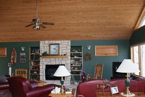 Lake Wildwood.Spacious and beautiful, inside and out with almost 3000 sq ft of living area on over 3/4 acre wooded lakefront property. Features include large kitchen, dining, living area, wood flooring, vaulted ceilings, fireplace, 3 bedrooms, 3 baths, family rm with wet bar, game area, & adjacent 3 season rm. Approx 174 feet of lakefront improved with seawall, decking, and dock. Gorgeous outdoor patio with fire pit.
