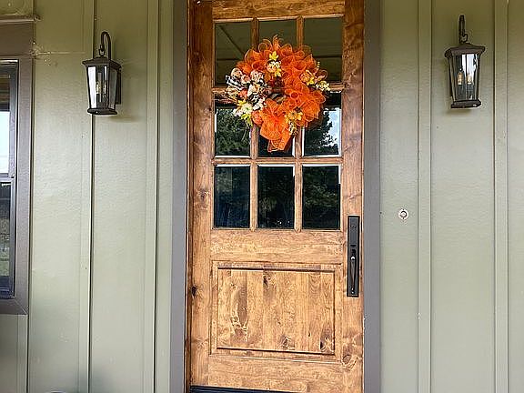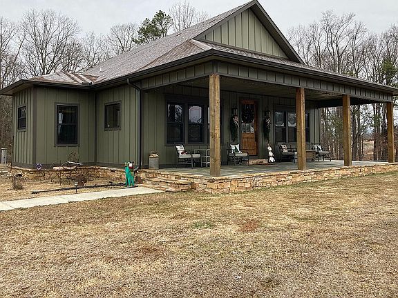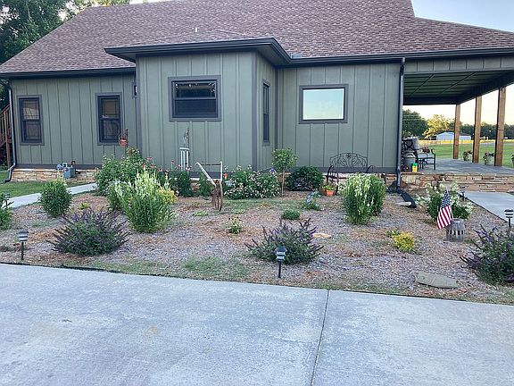 Cozy country home in great school district. Living room and kitchen are an open floor plan with vaulted ceilings, stone gas fireplace and shiplap throughout. Gas range/oven. Granite counter tops. Hardwood floors and imported Mexican tile. 2 Large primary bedrooms on first floor with walk-in closets and access to bathrooms. One bath with walk-in shower and the other with walk-in tub. Storm shelter inside home. Mud and laundry rooms. Large stone front porch with farmland views. Second floor is accessible from an outside stairway with landing. It is a large bedroom with full bath with shower and walk-in closet. On 5 acres of wooded and open land. Great neighborhood on quiet country road. 30X40 insulated detached garage with 6 inch concrete slab.