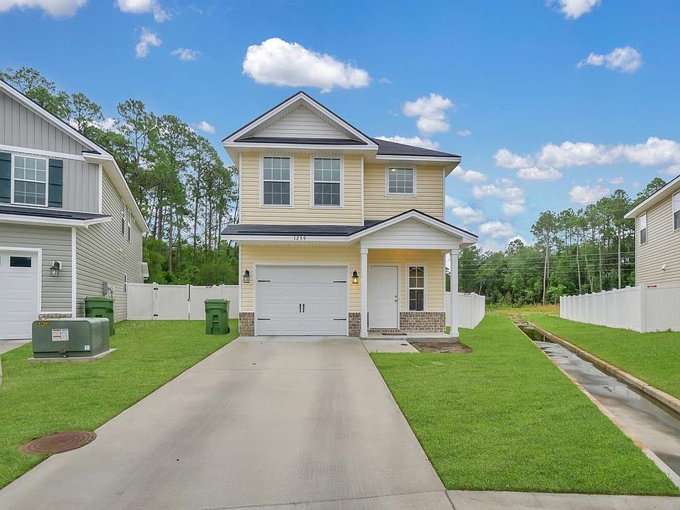 This cozy two-story home is tucked away inside the wonderful Griffin Park subdivision and is perfect for you! This house has three upstairs bedrooms with tons of storage space, two and a half bathrooms, one-car garage, and a spacious backyard with lots of privacy behind you. Plus, a large laundry closet down the hall from the primary bedroom! The kitchen, living room, and dining area are open-concept which makes for great entertaining space and lets in plenty of natural light. This house is ideally located from Ft. Stewart, Hinesville, schools, restaurants, and only a short drive to Richmond Hill, Savannah, and Pooler!