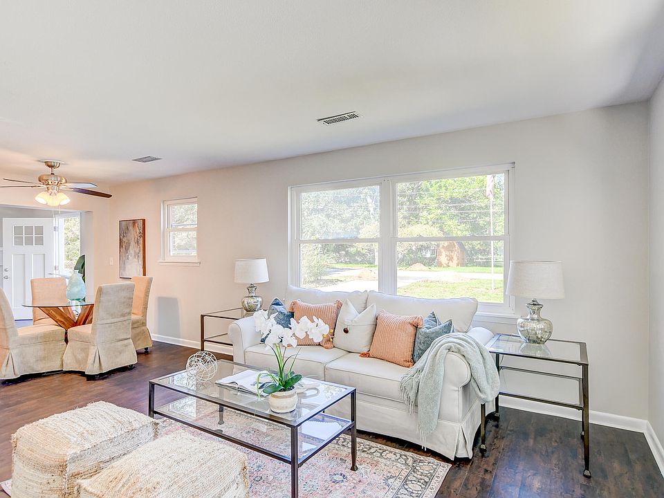 Talk about move-in ready! This renovated home in Hanahan has so many upgrades including new floors, fresh paint, and an updated kitchen and bathroom. You'll notice the charming curb appeal and the roomy driveway as you approach this home. Inside, you'll find the formal living room. Pass through to the dining area and family room. From here, you can access the kitchen with new granite countertops, new stainless steel appliances, and new white cabinets. There are three bedrooms and a fully updated bathroom with a new vanity and shower. Out back, you'll love the huge fenced-in backyard with tall, mature trees, a storage building, and lots of space to enjoy the outdoors. This home is located 1.5 miles from I-526, 2.7 miles from Park Circle, 4.5 miles from Charleston International Airport, and9.3 miles from downtown Charleston. Don't miss out on this great opportunity! Seller is a licensed real estate agent. ***Age of the home is unknown*** *Seller offering to provide buyer with 2/1 Rate Buy-Down with full price offer, potentially getting buyer's rate to 5.3% in year 1.