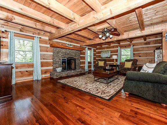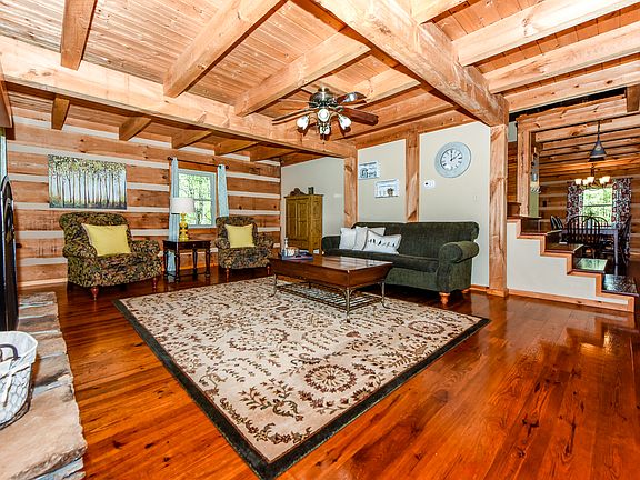 Call owner at 865-803-1541 - 2 story farm house style log home with full basement. Home is on 6.34 acres and includes detached 2 car garage, 40ft x 48ft barn with loft (can easily be converted into a horse barn), 25ft x 30ft garden shed and a large pergola (great for entertaining). This 1,920 sq. ft. home also features beautiful stack stone fireplace, custom pine floors throughout, open dining room/kitchen concept with Heartland classic electric stove, custom made cabinets, walk-in pantry and laundry room. 3 bedroom/2.5 bath, master bedroom includes large walk-in closet. Full basement, partially finished for additional living space.