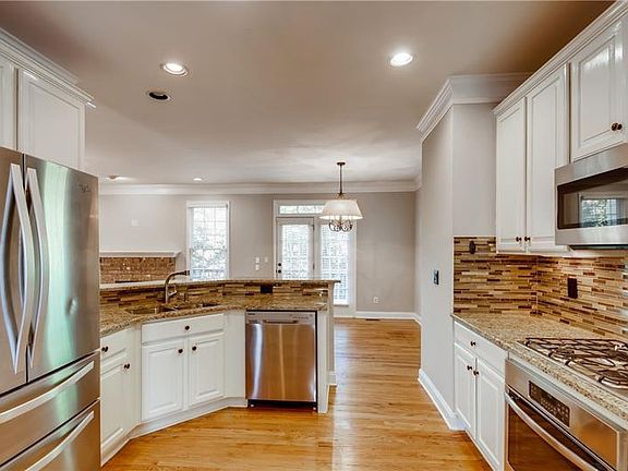 Fantastic End Unit TH in gated Ashworth. Best location in the neighborhood! Walk to Dunwoody Village! Beautiful updated Kit w/ Modern Backsplash, all New Stainless Appl, updated pantry &view to the Fireside Family Room & deck w/private setting back to quiet Green Space. Large dining/living rm w/ double trey ceilings & Floor to Ceiling Windows & an abundance of Natural Light. Freshly Painted Inside, brand New Carpet & Window Blinds.Hardwood flrs thruout the main level. *HVAC unit is 5 yrs. old*. Finished terrace level with high ceilings, two closets & full ba. large master with walkin closet, trey ceiling and master bath has new vanity.Secondary bedroom w/private bath and walk-in closet. Don't miss the terrace level with hardwood floor style tile, two closets and a full bath. This unit sits on a large cul-de-sac .