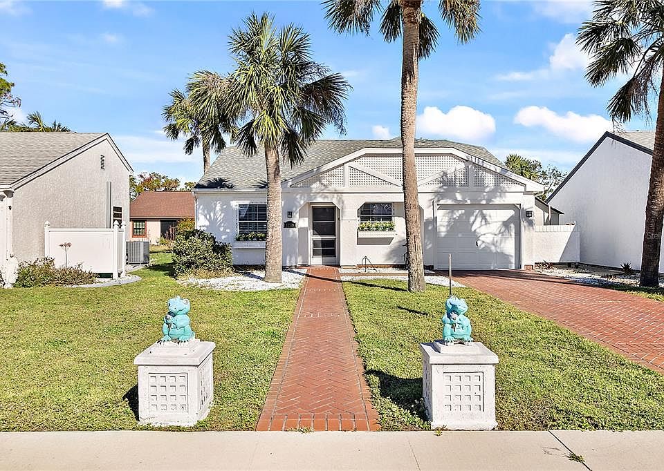 This lovely two bedroom, two bath turn-key home with a one-car attached garage is located in the highly sought-after community of Oak Hollow. This home features a very spacious living room with a vaulted ceiling and natural light. Double doors open to the main bedroom with a full bath plus a second bedroom with hall/guest full-bath. Enjoy your open lanai featuring stylish brick paver flooring. The roof was replaced in 2018 and the hot water tank and A/C were replaced in 2019. A small shed on the side of the house is included. Oak Hollow has public water and sewer, underground utilities and sidewalks. This location is convenient within a close distance to major grocery stores, restaurants, the public library, cultural center and many shopping needs. Enjoy the club house which includes an exercise room, table tennis, heated swimming pool, tennis court, pickleball, bocce ball court, billiards room, basketball court and picnic tables shaded by beautiful old oak trees. There are many social events throughout the year. Oak Hollow Property Owners' Association, Inc. is a deed-restricted community with a low quarterly HOA fee and no CDD fee.