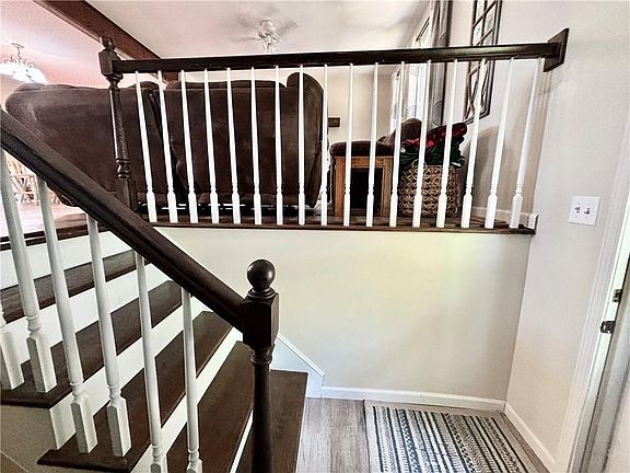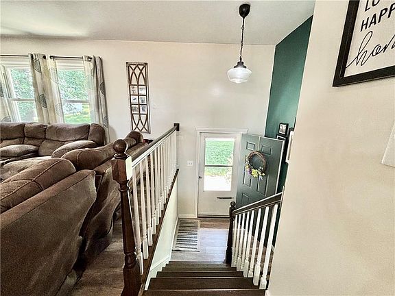 Exceptional split level with many beautiful updates. This home boasts an open-concept main floor that includes the kitchen, dining, and family room. Total of three bedrooms and two full baths. Newer flooring and paint throughout. Double vanity in main floor bathroom. Basement has 2nd family room. Additional oversized garage that is perfect for an exercise space, wood shop, hobby space, etc. Large loft area in the garage is great for additional storage. Located close to schools and walking trail. This property would make a great family home!