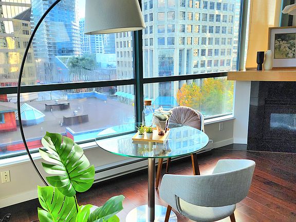 Beautiful and newly renovated fully furnished 1 bed 1 bath luxury condo in prestigious Coal Harbour. Located on the 8th floor, this unit is spacious and bright, with large windows to offer a great view while dining. It's conveniently located - 5 minute walk to the water (seawall), 5 minute walk to Robson shopping, 7 minute walk to Burrard Station - with a drugstore, fitness club, grocery store, and coffee shops right across the street. Get the best of Downtown Vancouver in a quiet and upscale setting. Unit Features: Bright suite with 9' ceilings Fully furnished with modern furniture Full kitchen Granite kitchen and washroom countertops Full view dining area Wall mount TV Queen size bed Gas fireplace Balcony Flex room In-unit storage room In-suite washer and dryer Included extra storage locker in building Included designated parking spot close to elevator Building Amenities: 24hr concierge 2 guest suites 80ft lap pool Hot tub Sauna Well-equipped exercise room Visitor parking Party room/ballroom Rent: $2,900/month (minimum 1 year) Utilities: includes gas and water No pets please. Available: October 22, 2024 Contact: (Zillow or text message preferred) Lease Terms 1 year Minimum 6 months. Owner pays gas and water and Renter pays for Electric. No pets, no smoking, no vaping. Renter insurance not required but recommended.