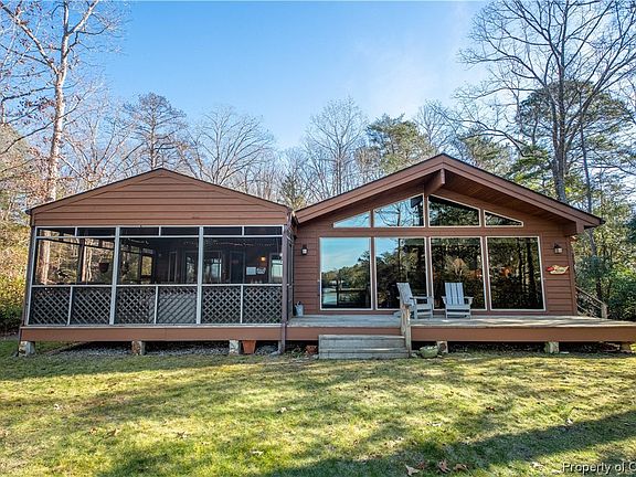 Welcome to your "Private Oasis"! Nestled on close to 3 acres. This Beautiful Lindal Cedar Custom Built home offers 3 bedrooms-3 full baths with open floor plan, tall cedar ceilings with large anderson windows capturing magnificent waterview's thorughout the home. Located on the Western Branch of the Corrotomon River. Kitchen features maple cabinets, gas stove, and stainless steel appliances. Hardwood floors throughout- Bonus room currently on airbnb -separate entrance-adorable space has , kitchenette, and full bathroom and room for queen size bed. Rivah Life at it's finest! This unique property is perfect for all year round living- cozy den has wood burning fireplace, wired for surround sound. Newer HVAC,gas backup, 2 separate meters, sit out on the screened in porch and enjoy the peaceful surroundings or enjoy the floating boat dock and a day on the water. No HOA, No Flood Insurance, 4 Bay Pole Barn with concrete floor and electricity, workshop/shed and outside yard hydrant. What a Gem- call today to schedule a tour of this Beautiful Home.