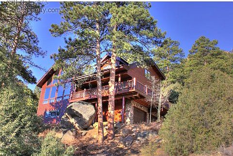 Tucked in the rocks and trees for a private setting with gorgeous 360 degree views. Log sided and many log accents inside for that log home feeling. Vaulted wood ceilings, Wall of windows, moss rock fireplace, hard wood and custom tiled kitchen floors. Upper loft master suite with private bath and walk in closet, 2nd bedroom is another suite, lower level with 2 bedrooms and full bath. Large garage with shop space, covered wrap around deck spaces and wired for hottub. Home comes Fully Furnished