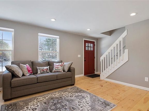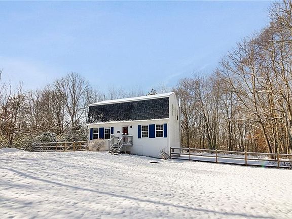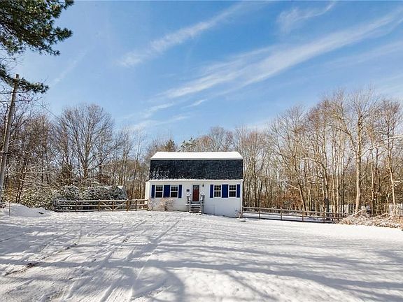 Privately set on 2 acres, this charming Cape Ann with Gambrel roof has so much....brand new kitchen with granite counters, center island tile back splash, farmers sink is open to living room with over-sized windows, wood floors throughout and wood stove in basement. First floor also offers wide plank oak floors, full bath, bedroom and office or dining room. Sliders off kitchen open to private entertaining deck. Second floors has hardwood floors, full bath 2 years old and 3 3 bed septic over-sized bedrooms with cathedral ceilings. Other amenities include: roof 2 yrs old and over-sized shed 12 X 16 with cement floor electricity, another shed and a new chicken coup! Basement has oversized windows and wood stove ready with endless finishing possibilities Close to highway, URI, train and more, this home is ready to move in!