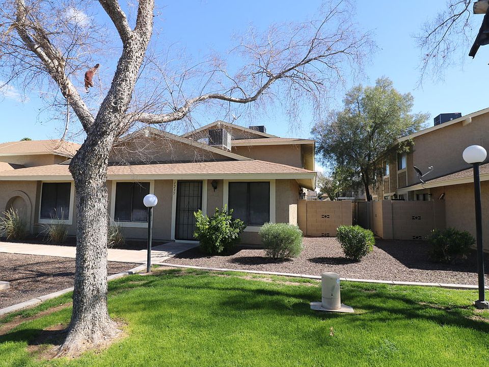 Light and Bright Townhouse amazing location just minutes away from the spring training ball parks, 101 Freeway and incredible dining, Sky Song, ASU, parks & golf courses. 9 acre Apache Park to east of unit for soccer, playground, basketball, ramada. Two-Story townhome with open kitchen and dining. This 2 bedroom, 1.5 bath home has a walk-in laundry room, private courtyard. Perfect property for a vacation home or investment property! Not many of these larger units hit the market, this will not last long!