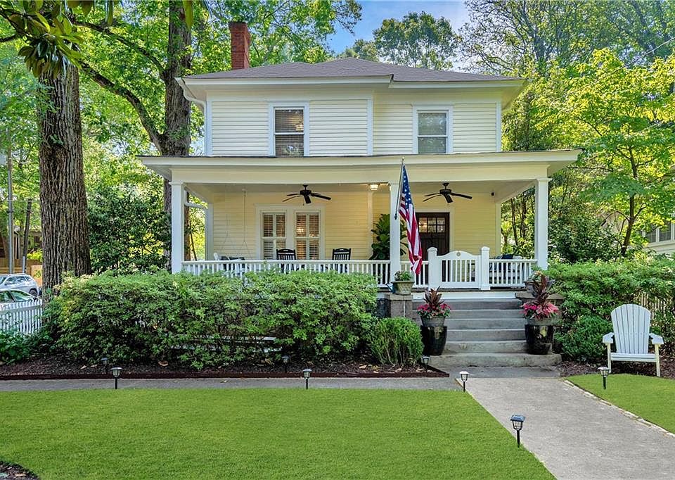 This is your chance to own a piece of Morningside history! Built in 1909, the iconic farmhouse at 1239 North Highland, rumored to be the oldest home in Morningside, oozes Southern charm from the oversized front porch with a swing to the gorgeous Magnolia tree and Azaleas. The first floor boasts a gorgeous chef's kitchen that spares no detail. Two dishwashers, designer Hallman 6-burner gas range with stainless pot filler above, two appliances garages including a coffee station with its own pot filler, under cabinet lighting and power strips, lighted glass cabinets, oversized refrigerator and freezer, separate ice maker and more! Custom walk-in pantry has built-in shelving, gorgeous wood countertops and a beverage cooler. Beautiful and durable quartzite countertops with island overlooking the breakfast room. All atop charming brick floors! Also on the first floor is a dining room with built-in China cabinets with glass doors, living room, original butler's pantry, 5th bedroom or office with built-in shelving, and full bath. Upstairs you will find the spacious primary bedroom with walk-in closet and newly renovated spa-like bath with free-standing tub separate walk-in shower, private water closet, and double vanity (photos of primary suite will be posted on 6/12). Additionally, on the second floor there are three more secondary bedrooms (two with charming original fireplaces) and additional full bath. A thoughtfully designed mudroom area, including power outlets for charging laptops and devices leads to the large, flat backyard with top of the line artificial turf installed in 2020. Do not miss the designer farmhouse-style Carriage House over the detached 2 car garage with vaulted ceilings, full bath, kitchen with ice maker and beverage cooler and wall of custom cabinetry! Perfect for in-law suite. This historic charmer sits on a corner lot with driveway on McLynn Avenue. Front and back yard are enclosed with white picket fence and is one block away from San Francisco Coffee, Ma Li, DBA BBQ and is equidistant to both the heart of Virginia Highlands and Morningside. Walk to Alons, Whiskey Bird, Murphy's, Pure Barre, Highland Tap, George's, and all of the fabulous shops and boutiques that the neighborhood has to offer. This one won't last long! Lower bedroom count is representative of the carriage house bed and bath count.
