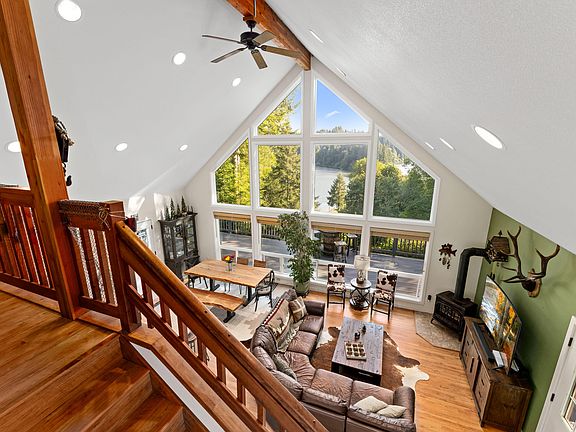 Escape to your lakeside retreat at 1239 North Tenmile Lake! Built in 2005, This stunning 3 bedroom, 1 1/2-bath, offers unparalleled views and tranquility. Featuring a private floating dock and a convenient 10-minute boat ride to the Lakeside Marina. The main house boasts an impressive wraparound Trex deck, floor-to-ceiling windows with wood blinds. Enjoy breathtaking panoramic lake views from the entire home, even from the upstairs loft. Alongside boat access, this peaceful 2.21-acre property also has road access, perfect for full time living. Nestled next to the main house is a cabin equipped with a bedroom and half bathroom, essential for family and friends. The property includes a spacious metal carport (20 x 24), an attached storage shed, a custom built (12 x 24) shed with living opportunities, backup generator wired to both dwellings, a custom chicken coop and Kayaks that stay with the property. Whether you are looking for a vacation home or full-time living, 1239 North Tenmile