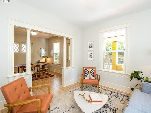 Classic 1905 Portland Craftsman w/ the most delightful front porch & details. Positioned on a corner lot just north of Alberta St. this charmer lets in light + has great flow. Original columns separate the living & dining room. The high ceilings give a wonderful sense of space. Updated kitchen / bathroom + 3 nicely sized bedrooms all w/ good closets. Unfinished, full basement has much potential for expansion. Backyard is spacious & ready for a gardener. Recently replaced roof. Location is a 10+