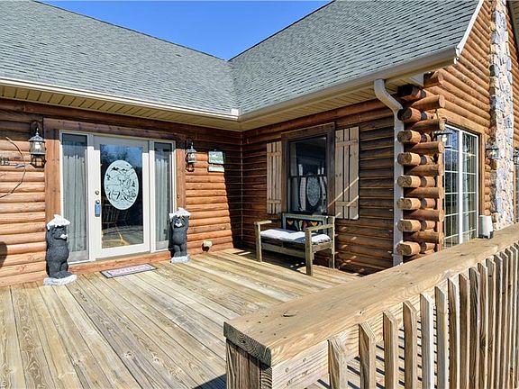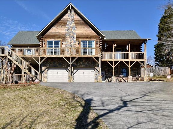 Beautiful Custom Built Log Home with view of stream off the front deck and Saltwater Pool in the back all bundled with city convenience! Great Room with soaring ceilings and gas log fireplace, Hickory floors throughout home, Open Kitchen and Dining, Island with bar seating, Laundry Room, Half Bath, Spacious Primary Bedroom w/Private Deck and adjoining bath, Primary bath has large walk in tiled shower, separate jetted tub & linen closet, 2 secondary bedrooms on main, Claw Foot tub in Hall Bath, Upper level Loft looks over Great Room.. Venture downstairs to what could be completely separate living quarters w/separate entrance - Den with game playing area, 4th bedroom and bonus (which has closet and could be 5th bedroom) Full Bath with Tub/Shower combo and separate Walk in Shower, 8ft ceilings, Approx 500 sqft Heated & Cooled Workshop off garage area with 1/2 bath too (not counted in finished sqft) ... 40 year roof, Multi-zoned Heat Pumps, 2 Water Heaters, 2 Storage Buildings