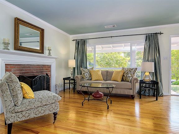 This charming and inviting home has many wonderful features to delight the discriminating buyer. The lovely living room has gleaming hardwood floors and a pretty fireplace. French doors open from the dining room to a sunny, private yard with a new lawn and lovely gardens. An ideal setting for dining alfresco, relaxing or play!The cheerful eat-in kitchen has white cabinets, granite counters and hardwood floors. From the kitchen, enter a spacious family room with newly-installed carpet and plantation shutters. This fabulous room is perfect for entertaining! The private master suite has a vaulted ceiling, plenty of closet space and looks out to the tranquil back yard. There are three additional bedrooms. Tastefully updated bathrooms feature travertine tile. Crown moldings and pretty baseboards add architectural interest. Thoughtful attention to detail is evident throughout this delightful home. Imagine settling in and enjoying comfortable living for many years to come!
