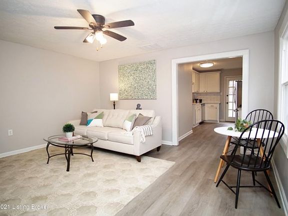 This charming updated shotgun in the heart of Old Louisville has so much to offer. The large living room features luxury vinyl plank flooring, a neutral tone color scheme and new ceiling fan. The renovated kitchen has white shaker style cabinetry, quartzite countertops, a full suite of stainless steel appliances and a subway tile backsplash. Located off the kitchen is the full size laundry room with built-in shelving and the full bath featuring a custom tiled shower with tub, new vanity with quartzite top and all new fixtures. The rear of the home has a covered back porch and fully fenced rear yard. The front of the home offers two large bedrooms, both with new carpet, ceiling fans and ample closet space.