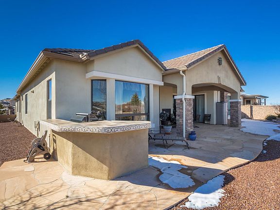 Located in one of Prescott's finest golf communities on Hale Irwin Sig course, this fabulous home has open concept floor design and panoramic views Granite Dells, Bradshaw and Mingus mtn range. Peaceful backyard covered patio with indoor/outdoor fireplace and built-in BBQ island with frig. Front patio has courtyard. Spacious interior with many upgrades and flex room for work-out or office. Close to schools, grocery, gas and medical. Just a few miles from Prescott's historic downtown Courthouse Square.