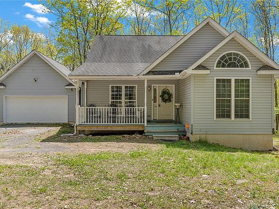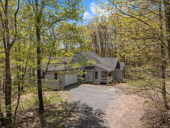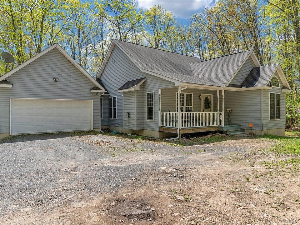 *** MULTIPLE OFFERS - H&B by Sunday, 5/21 at 8pm *** FIRST TIME ON THE MARKET! This custom RANCH home was built in 2004 and is nestled on an acre of partially wooded privacy. Featuring 3 beds, 2 baths, 1400 SqFt and ONE FLOOR LIVING, this lovely home is awaiting it's new owner! As you pull down your private driveway, you will be greeted with a covered front porch and attached 2 car garage. Upon entering the home you will immediately feel at peace with the open concept living space including vaulted ceilings, recessed lighting, propane fireplace and CENTRAL AC! Off the kitchen is a breakfast nook leading to the elevated back deck with beautiful Pocono Mountain Views! Some additional features include: NEW OIL FURNACE with forced air heat, NEW WATER PRESSURE TANK, first floor laundry off the master suite and a full sized basement with walk-out access waiting for your finishing touches! Close to all major highways, restaurants, shopping, medical and all POCONO ATTRACTIONS! LOW TAXES!