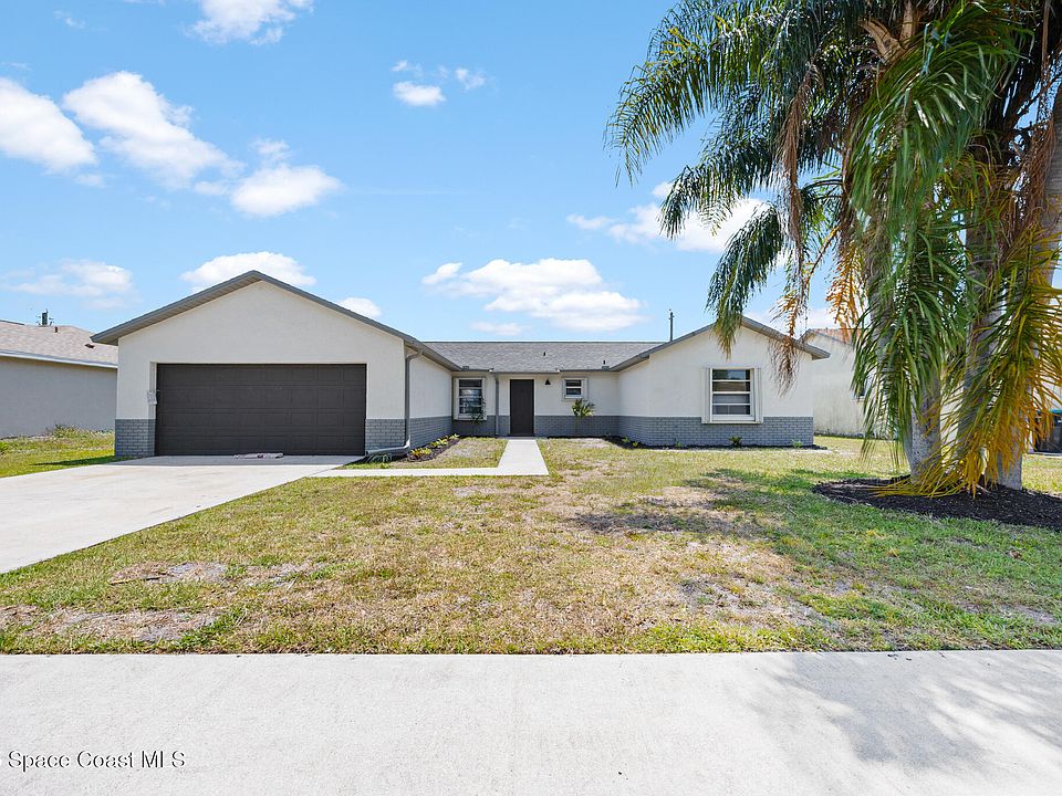 Prime Location in Sought-After NE Palm Bay! Offers convenient access to major employers, pristine coastlines, shopping, dining, and top-rated schools. This fully updated gem boasts significant peace of mind with a brand new 2025 roof and 2025 HVAC system. Step inside and be captivated by the stylish interiors featuring stone countertops and brand-new appliances in the kitchen. Start your mornings right at the charming coffee bar, creating the perfect brew to enjoy in your beautifully renovated space. This is truly a must-see property offering modern comfort and exceptional convenience!