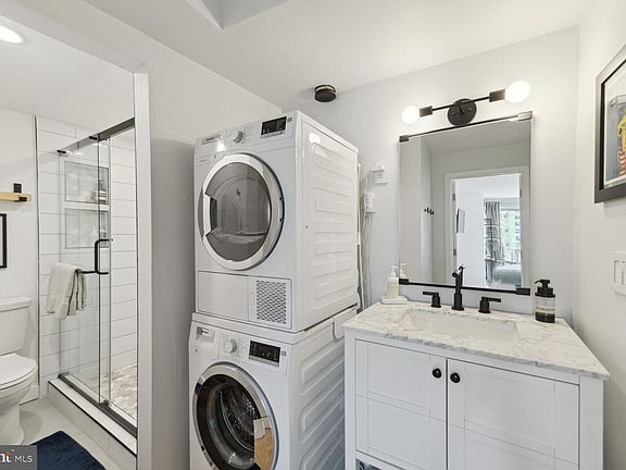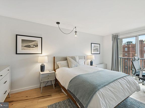 Rarely available higher-floor, front-facing 2 bed/2 bath condo at Crescent Tower Condominiums with separately deeded 80 square foot private storage space, amazing rooftop pool and oversized west-facing windows with unobstructed views overlooking beautiful, tree-lined Vermont Ave. This move-in ready, bright, open condo has one of the largest floor plans in the building and features more than $35,000 in updates/upgrades made since 2018 including two fully renovated bathrooms, brand new stainless steel Samsung kitchen appliances (including a 6-burner gas stove), modern lighting, hardwood floors, in-unit Blomberg washer and ventless dryer, new heating/AC convector and smart home functions including smart lock and smart dimmers. The large primary bedroom features a 45 square foot custom-built closet and ensuite modern bathroom w/marble-floored stall shower and Delta fixtures. The second bedroom offers flexibility as a guest bedroom and/or at-home office/den with floor-to-ceiling sliding doors opening to a Juliet balcony and French doors leading to the spacious living room. The large second bathroom features a tub shower, Delta fixtures and additional storage. Condo fee includes all utilities (electricity, gas, A/C, heat and water), on-site property management, pool and fitness room. The building is well-funded with no special assessments planned or assessed during the 5 years the current owner has lived here. Recent building updates at Crescent Tower (all made without special assessments) include two new elevators, upgraded Juliet balcony railings, new water boilers, and new hallway carpet, paint and lighting. The current owner rents an assigned parking space in the garage for $200/month. The building is wired for Comcast, RCN and Starry. The pet-friendly building is a short walking distance to all that city living has to offer, including Whole Foods, Trader Joe’s, dining, shopping, entertainment and fitness. All Metro lines are within a short walk as are multiple bus lines and Capital Bikeshare stations. Walk Score and Transit Score = 98. The owner has lived at the property full-time since 2018 and has never rented.