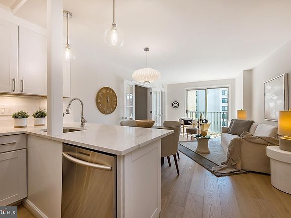 Enjoy life from the comfort and convenience of this 2 bedroom 2 bath condo with deeded parking. Crescent Tower #709 is a stylishly renovated home located where several vibrant neighborhoods converge. The building’s notable crescent-shaped facade delivers an architecturally unique residence. Located on a high floor, featuring spectacular light, new hardwood floors, updated baths and kitchen. The modern kitchen features stainless appliances, new quartz counters and opens onto the main living area — where it’s easy to imagine unwinding after a long day or gathering with friends and family. The tucked away spacious primary suite offers south-facing windows with views and a generous walk-in closet. Enter the second bedroom through French doors and tailor it to become your personal office, guest room, nursery, or fitness room. Stylishly renovated, this residence also delivers central AC, in-home laundry, deeded parking, community gym, rooftop pool and on-site management. Pets are welcome here. Lean in, relax and enjoy. Experience the optimal city lifestyle right outside your door. Logan Circle is a popular, fashionable, diverse neighborhood where one can stroll the streets to sample the city’s finest cuisine, shop for boutique finds, sip innovative cocktails, run errands or even grab a picnic and go enjoy a day at Logan Circle. And because it’s set in the heart of DC, Logan Circle makes getting around easier than ever — with convenient Metro access nearby at Dupont Circle or U Street. A home that delivers urban convenience and exciting city lifestyle, 1239 Vermont Avenue NW #709 offers a rare chance to experience lifestyle you've always dreamed of.