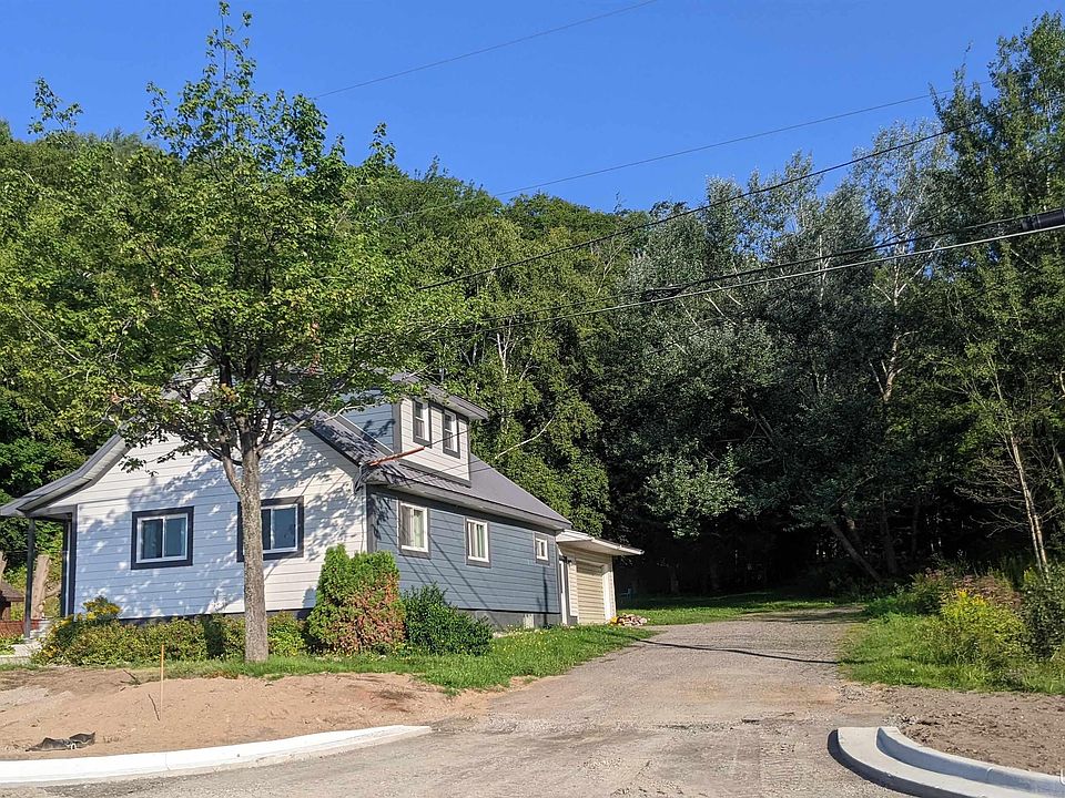 A view of Munising Bay and a lovely home!!! This GEM has been REALLY updated!!!! 3 Bedrooms (one is walk-thru) 1 bath.....New updates include: 2020 Premium steel roof and addition of extended eaves and rakes. All new carpet throughout house New vinyl flooring in living room and dining room Bathroom remodel, tile floor, tile shower New water heater New paint throughout New light fixtures and ceiling fans 2021 Cement lap board siding 1” insulation added to exterior of home All new windows New furnace New kitchen sink and countertop