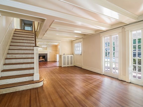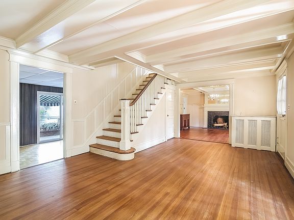 This 1913 farmhouse colonial has many classic details including cofered and beamed ceilings, original raised panel molding and plate shelf in the dining room. Special features include four fireplaces, an eat-in kitchen, a laundry on the second floor and five/six bedrooms. The private backyard is complete with an in-ground pool!