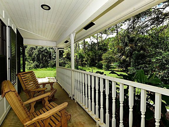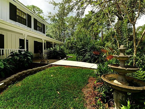 Bring the family and the toys to this spacious 2 story home in the Acreage. Tropical plants galore, and privacy as well. Enter from the long country porch into the large living room with fireplace. Circle around to the dining area, large enough for a table of 10. Fr. doors lead from 2 walls onto screened areas. More seating is provided in the eat- in kitchen, that boasts plenty of counter space, hickory cabinets, a desk area, bar sink, stainless appliances, and a double oven. The den/study also has french doors to the wrap around porch. Upstairs leads to the HUGE master b/r, upgraded bath with a quartz topped raised vanity. It also has fr. doors leading to the screened balcony, as does b/r 3. B/r 4 is presently used as an office. Recent renovations new BRs, Floors, AC and all new Black Stainless Appliances oversize for big family, gutter filters, outside paint in blues it’s a paradise large pool waiting for a family to call home available soon