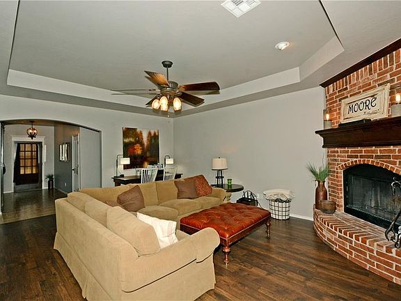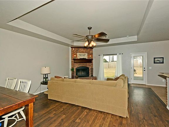 Edmond schools! Massive front porch w swing. Beautiful tray ceilings and indoor brick adorn this amazing home w/4 bedrooms, 2.5 baths, AND a BONUS ROOM! You will love this open floor plan. Expansive dining area is just off patio & great for entertaining! The kitchen offers lots of granite workspace, corner pantry & stainless steel appliances. The oversized Master bedroom is HUGE! The gorgeous spa-like ensuite has his & her vanities, corner jetted tub and walk-in shower. The master closet provides lots of space. Guest bedrooms are large and have spacious closets. The Scenic oversized back and side yard is newly privacy cedar stockade fenced and perfect for pets and includes a chicken mansion! Plenty of storage throughout w/ floored attic space. Reverse Osmosis filter in kitchen. (The Security System w 3 cameras, The new salt water filtration system which filters the entire home, and all appliances can stay with a good offer!) aerobic system, fully guttered & has a great storage shed!