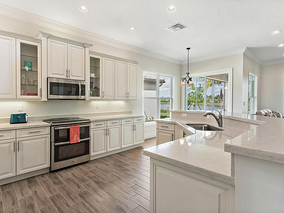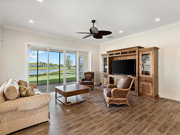 Incredible Lake View - Bimini Model features an oversized lot, 3 bedrooms plus a den and an open floor plan. Over $75,000 in upgrades. Upgrades include extended covered patio with sliding door access, 2 foot garage extension, over 30 extra recessed lights, quartz kitchen counter tops, Wood plank tile floors and much more. HOA Fee includes lawn care, alarm monitoring, cable and internet. Please call for full list of upgrades.