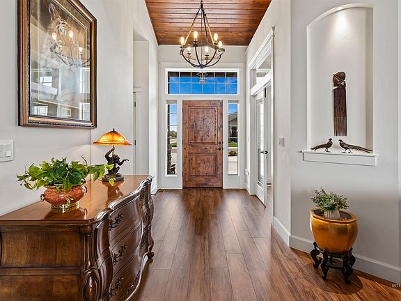 A unique, open, and meticulously cared for custom single level home backing to a common area with walking paths along the canal. Fully fenced with beautiful mature trees, raised garden beds, gas plumbed & covered patio for evening entertaining. Stunning ceiling beams in the vaulted great room with tongue and groove wood. This home offers one of the deepest RV garages in the neighborhood at 69 feet, plus an additional 3 car garage and storage area. There is also an outdoor gardening shed with power. The garage also offers a finished loft and full bathroom for a bonus area or guest space, as it is conditioned. This home was significantly upgraded to Sub Zero fridge, Wolf six burner range, double ovens, pot filler, instant hot water, and prep sink. Plumbed for a generator and a filtration system. Sellers left out no detail and it shows like new. 3 generous bedrooms plus an office and loft. The primary suite offers a walk-in shower, heated towel rack, walk-in closet, and built-in makeup counter. Many extras.