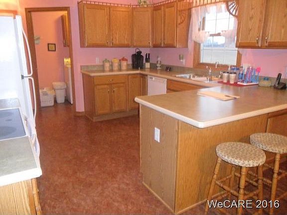 This one owner home looks Amazing! Its a vinyl Schumacher home right off of St. Rt. 114. Come admire this beautiful home on Rd. 19-K Kalida school district. This is 3 bedroom 2 bath has a wonderful kitchen and dining room which extends into a sunroom. The living room has a fire place and has cathedral ceilings. The pond has a deck that you could enjoy for many years. The 1898 sq. ft. basement is big and will allow for your creative ideas. Hope you can check it out soon. Included is a 30x40 pole bldg. and 20x16 shed.