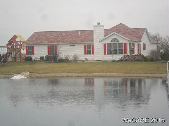 This one owner home looks Amazing! Its a vinyl Schumacher home right off of St. Rt. 114. Come admire this beautiful home on Rd. 19-K Kalida school district. This is 3 bedroom 2 bath has a wonderful kitchen and dining room which extends into a sunroom. The living room has a fire place and has cathedral ceilings. The pond has a deck that you could enjoy for many years. The 1898 sq. ft. basement is big and will allow for your creative ideas. Hope you can check it out soon. Included is a 30x40 pole bldg. and 20x16 shed.