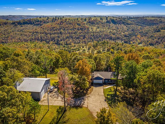 Large home in country setting with incredible views off the back deck of the Ozark Mountains. Bald Eagles were spotted while professional photos were being done! Main level features master suite with en suite bathroom, 2 walk in closets and attached sun room; 2 guest bedrooms; full guest bath; formal and casual living/ dining areas; kitchen; and utility room. Entire basement is H/C but finished part features 4th bedroom, 3rd bath and living/game room area. Unfinished part has another space that could easily convert to a 5th bedroom or office; workshop area; basement garage; and safe room. Detached shop features two fully finished 2 bedroom; 1 bath; 1250 square ft apartment spaces on one side and a large garage bay on the other that is perfect for your boat or camper. Read Supp.