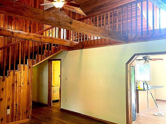 Enjoy the scenic views from this 3/4 bedroom, 3 full bath home with tongue and groove vaulted ceilings, huge flex room and office space. You will love the nice sized kitchen with stainless steel appliances. Dining area with patio door leading to spacious deck with pool and slide. Relax on the large covered front porch. Also for your convenience is a detached garage. All this is situated on approximately .7 acre lot. Call now to schedule a tour. Seller previously had real estate license in KY.