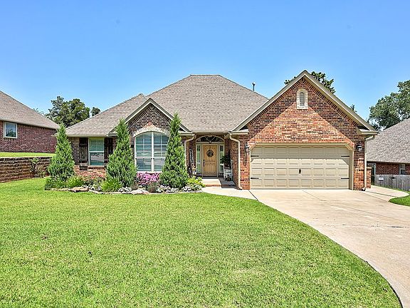 Gorgeous 4bd, 2ba home in quiet Eastwood Summit neighborhood. Minutes to I-40 & I-240; close to Tinker Air Force Base & Boeing. Choctaw-Nicoma Park Schools. MWC Police & Fire; MWC utilities. Home features hardwood floors & custom plantation shutters. Newly painted exterior & interior, including all interior trim, doors & guttering, custom painted distressed black cabinetry. Mother-in-law plan includes master bedroom with tray ceiling & ceiling fan, master bath with walk-in shower, jetted tub, double vanity with new faucets, ceiling fan & large master closet. KITCHEN features Frigidaire Gallery stainless steel appliances including gas cooktop, granite counter tops with tumble stone back splash, stainless steel farm sink, garbage disposal, walk-in pantry, upper & lower kitchen cabinet lighting, & wine rack. LIVING ROOM features tray ceiling with ambient lighting & beautiful custom rock gas fireplace, reclaimed wood mantle with electrical outlet. 3 nice size bedrooms on opposite side of home with ceiling fans & cable ready. Guest bathroom includes like new tub & shower. Beautiful LANDSCAPING with stone flower beds, mossy boulders, established trees & shrubs, completely irrigated front & back yard with surface drains & back flow system. Wonderful trim & capped cedar fence with multiple gates. Huge back yard features two raised garden beds, two apple trees & one peach tree, large covered porch with stained concrete & ceiling fan. PLUS new he/she shed with concrete ramp & skirting. CUSTOM DOG DOOR with matching brick/stone steps open to back yard. BONUS back yard backs up to wooded landscape… NO NEIGHBORS to the north! PLENTY of bird watching & fireflies to enjoy from back yard oasis! Home has security system, digital WiFi thermostat, new sprinkler system control box, complete guttering & large floored attic. Beautiful NEIGHBORHOOD! 4 miles of walking trails, 2 fishing ponds, pool, playground, lighted tennis & basketball courts, active HOA! Owner (405) 443-5366